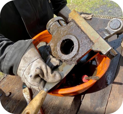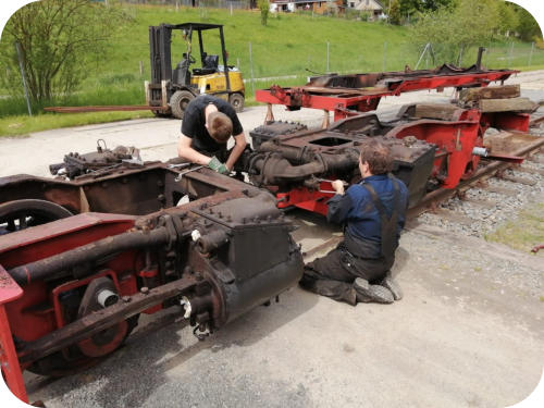 - Aufarbeitung Radsatzgruppe (Schweiß-, Dreharbeiten)