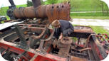 Kesselverkleidung, Führerhausdach und Seitenwände sind demontiert, sowie