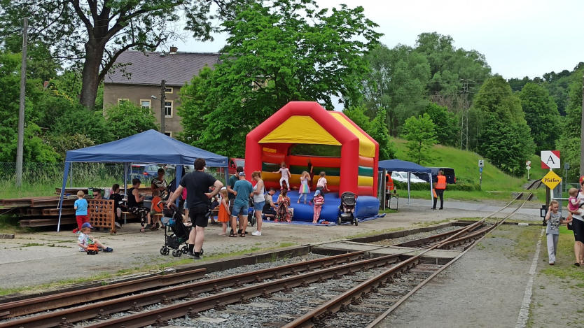 30. und 31. Mai 2026 von 10 bis 17 Uhr Ende Mail laden wir wieder Groß und Klein zu Dampfzugfahrten ein. Am Sonntag feiern wir eine große Kindertagsparty mit Hüpfburg, Kinderschminken und Spielzelt für Geschicklichkeitsspiele, Malen und Seifenblasen. Für das Wohlergehen wird mit Imbissbetrieb, Getränkeversorgung, Kaffee und Kuchen gesorgt. Gegrillte Bratwürste der Fleischerei Hedwigshöhe in Ehrenberg in bewährter Qualität warten auf Gourmet`s. Bei schlechtem Wetter wird unser Zelt beheizt. Das Reservieren von Fahrkarten ist nicht nötig. Fahrkarten erhalten Sie vor Ort zum Preis von 7,50 € Erwachsene ab 15 Jahre / Kinder von 6 bis 14 zahlen 3,50 € Die Mitnahme von Kinderwagen und Rollstühlen (keine elektrischen mangels Heberampe) ist im Zugführerwagen, ohne Ausstieg am Haltepunkt „Glasstrasse“ möglich. Behindertenparkplätze stehen am Bahnhof zur Verfügung.